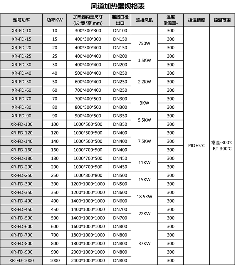 1.風(fēng)道加熱器采用不銹鋼加熱管作為發(fā)熱體